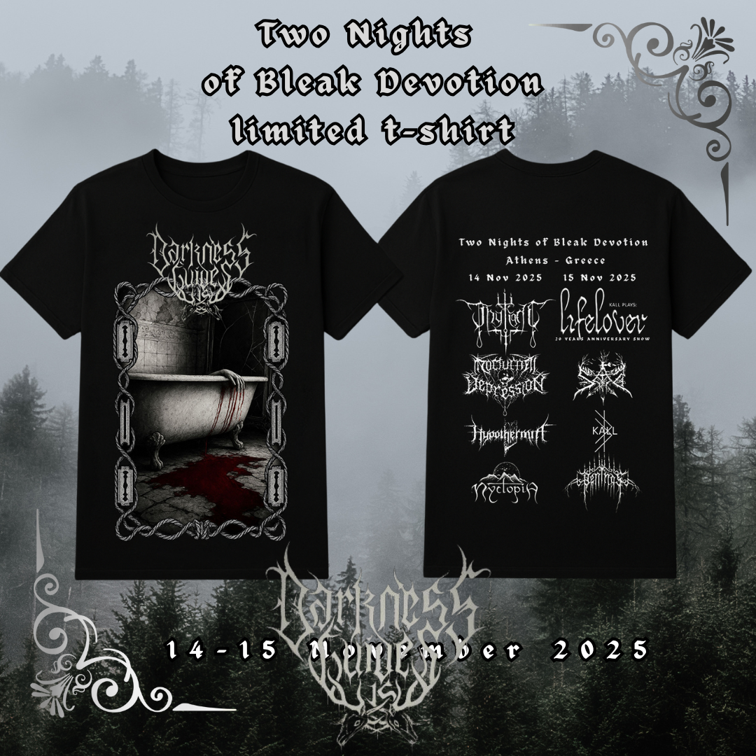 Preorder the limited Two Days of Bleak Devotion t-shirt now. Pickup will be at the venue entrance on the day of the event with your ticket.